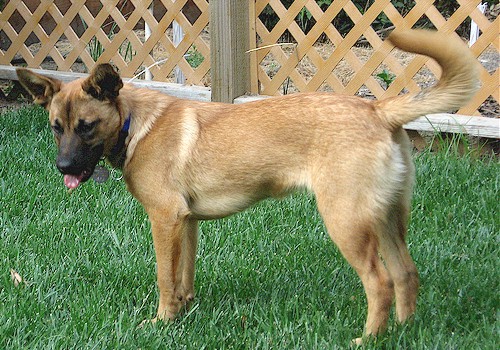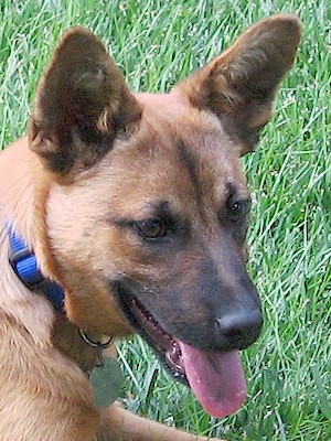 Molly May is a wiggle-butt happy, sweet and affectionate small 3 year old female, of unknown DNA. She appears to be at least partly Belgian Malinois.